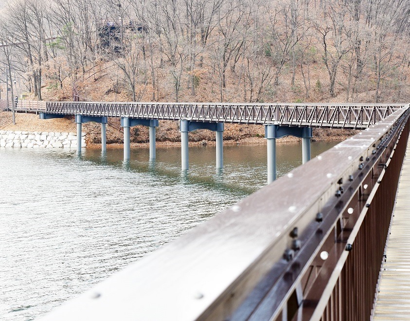 이에 파주시는 파주~양주 사이 단절된 구간을 연결하기 위해, 38억 원의 예산(도비 19억, 시비 19억)을 투입하여 부식 방지에 강한 고강도 복합소재의 ▲순환형 마장호수 수변 산책로 204m ▲데크로드 418m를 수중에 설치했다.